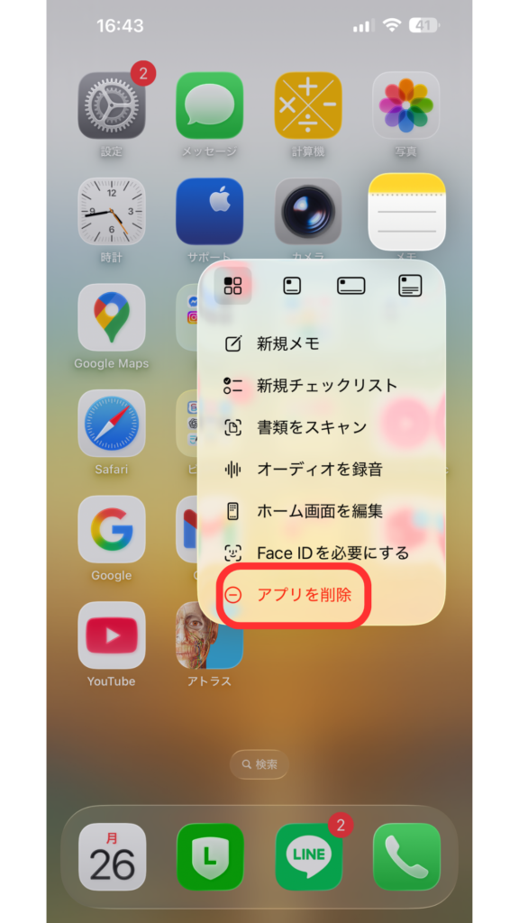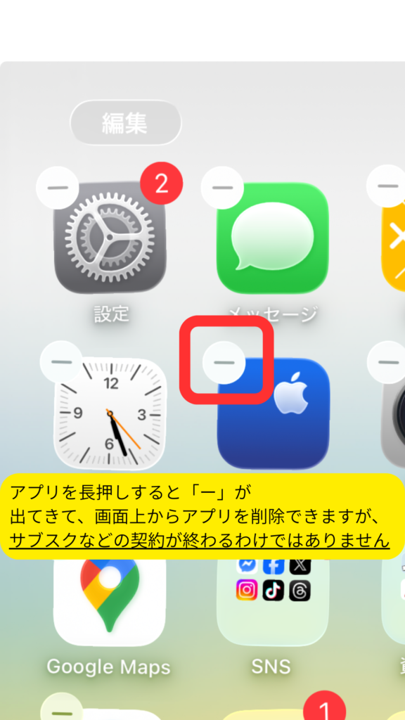 - アプリをスマホから消す