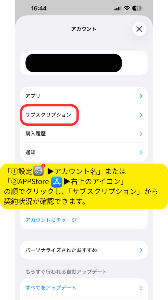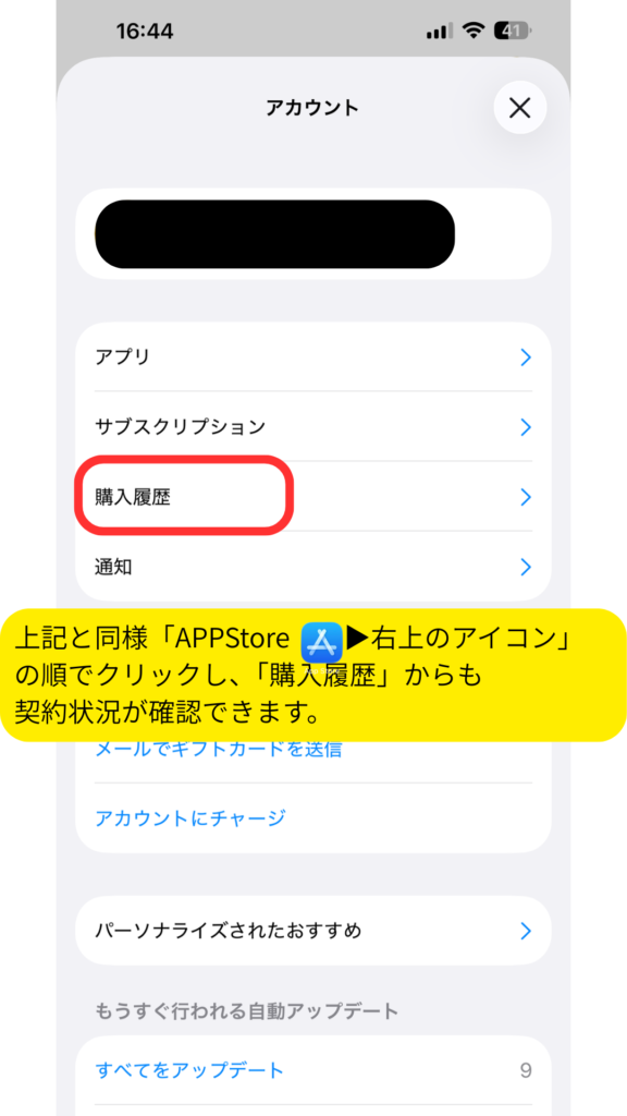 ③ 「解約済み」「終了」の表示があるか確認